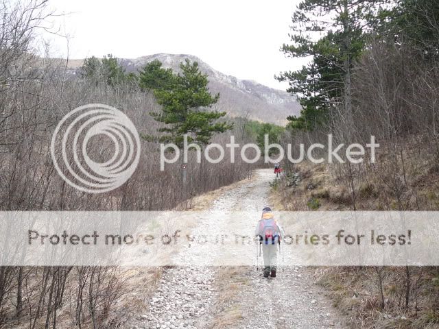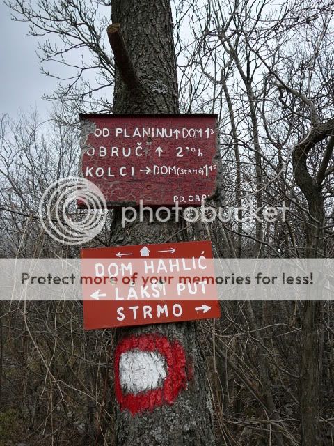 Najprije se penjemo šumskom cestom, povremeno ju krateći prečicama do križanja planinarskih puteva. Kao pravi planinari odabiremo onaj teži i strmiji uspon – preko kolci. Šumskom cestom dolazimo do njena okretišta (završetak ceste) i onda nastavljamo lijevo oštrim usponom kroz lijepu borovu šumicu do uređenog odmorišta - vidikovca. Sjeli smo na drvene klupe, a braco se poput pravog „frajera“ izvalio u travu.