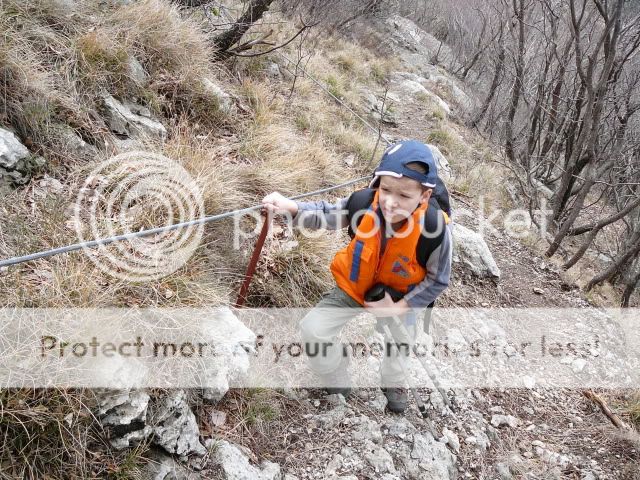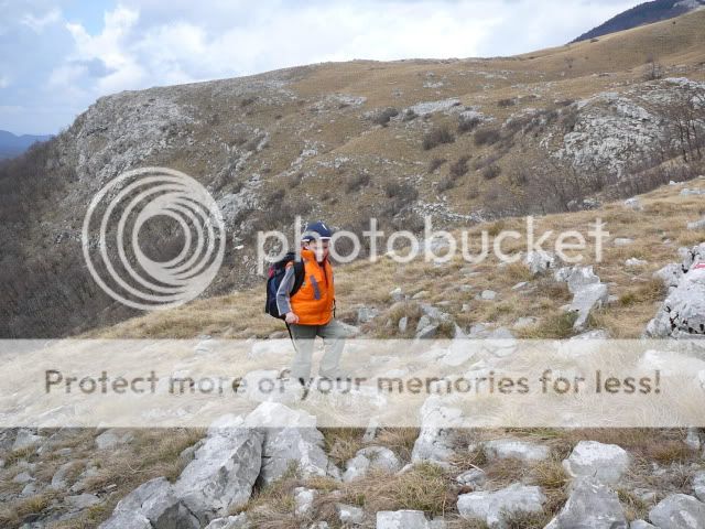 Penjemo se sada kamenitom strminom, pa opet kratko položenijom zemljanom stazom do stijene kroz koju je prehod osiguran sajlom. Braco sve prelazi, kao pravi planinar, još i s ruksakom na leđima.