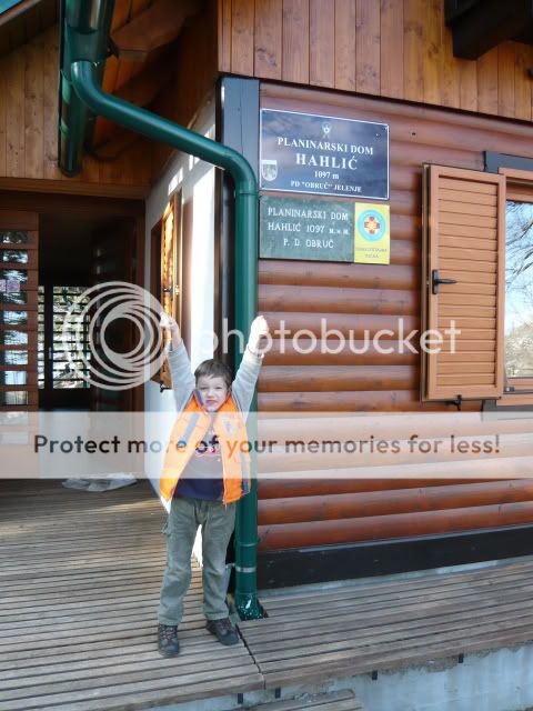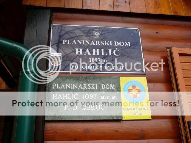 Nakon 1 sat i 45 minuta hoda stigli smo do Planinarskog doma Hahlić (1097 m) smještenom na malom zaravanku između borove šumice i kamene glavice nekoliko metara višeg istoimenog vrha.
